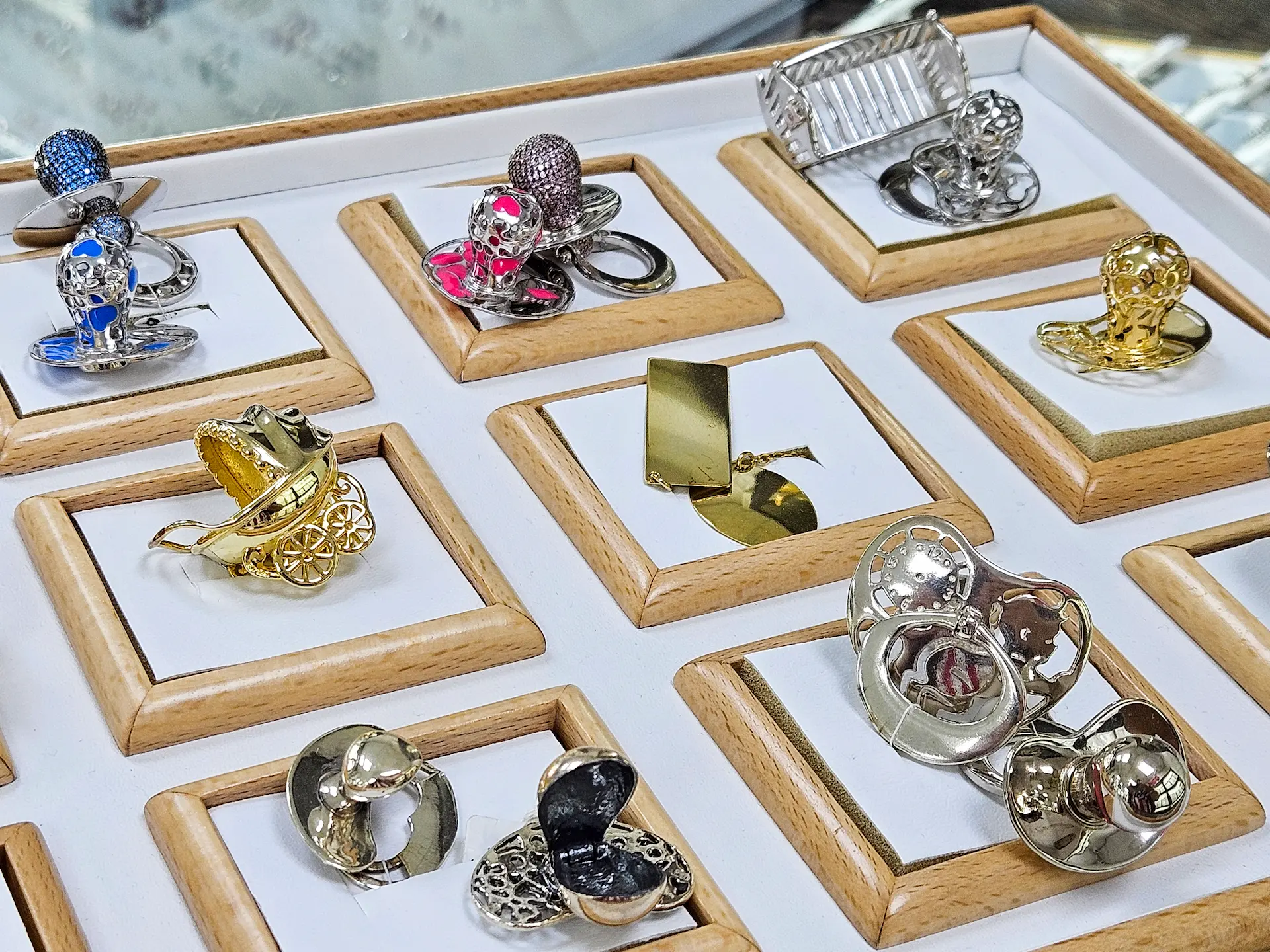 Wśród naszych propozycji znajdziesz srebrne i złote łyżeczki oraz oryginalne symbole chrztu, takie jak złoty wózek dziecięcy czy srebrny smoczek.